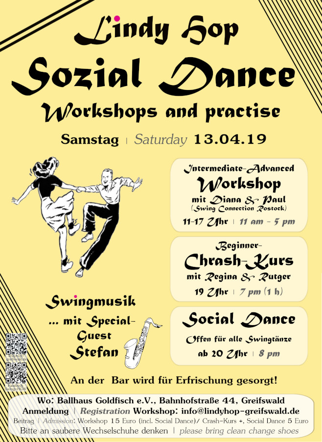 Samstag, den 13.04.2019 findet in Greifswald ein Workshop und ein Social Dance -Abend für Lindy Hop statt.